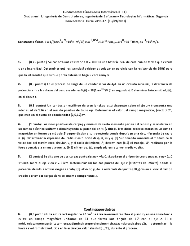 He publicado nuevos examenes de 1º Fundamentos Físicos de la Informática: FFI 2ª convocatoria 2016_2017 resuelto.pdf