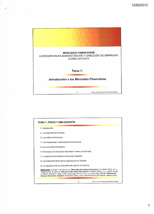 Trabajo final de la asignatura Mercaods Financieros. Exposición calificada con 9,5.
