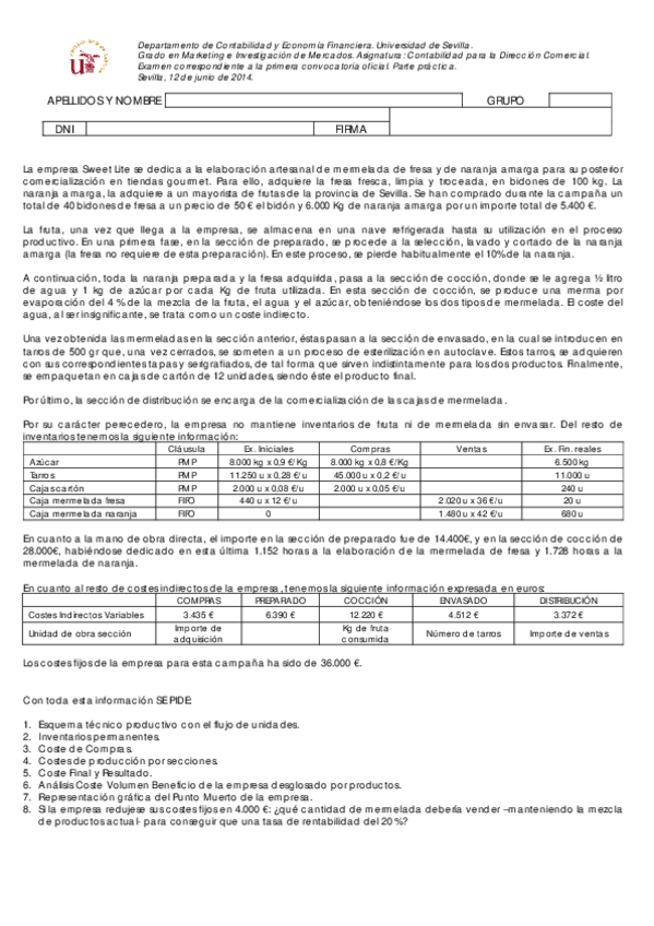 He publicado nuevos examenes de 2º Contabilidad Para la Dirección Comercial: Solución Sweet Lite (examen de junio 2014).pdf
