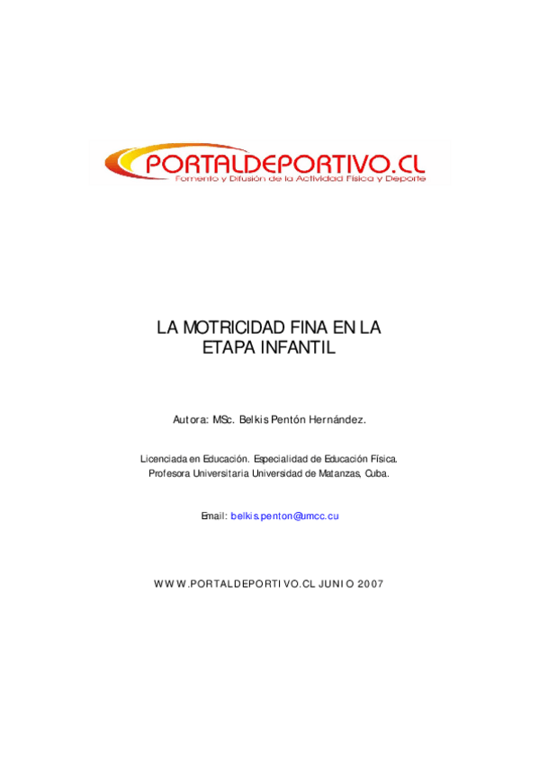 He publicado nuevos apuntes de 1º Habilidades Motrices y Sistemática del Ejercicio: Motricidad fina en la etapa infantil - Penton - art.pdf