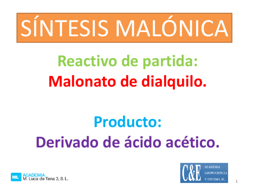 He publicado nuevos apuntes de 1º Química Orgánica I: SÍNTESIS MALÓNICA y ACETILACÉTICA.pdf.pdf