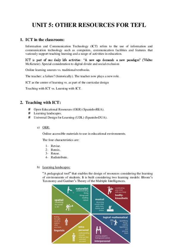 He publicado nuevos apuntes de 4º Metodología y recursos para la enseñanza de lenguas extranjeras (Inglés): Unit-5.pdf