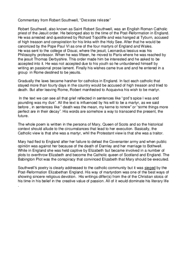 He publicado nuevos apuntes de 1º Estudios Culturales en Lengua Inglesa I: 19.Decease Release%2c Robert Southwell.pdf