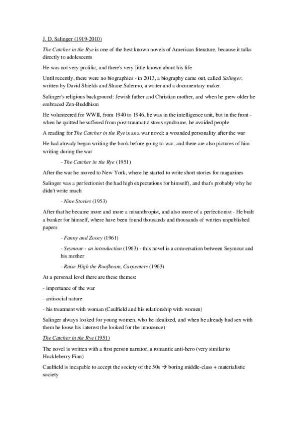He publicado nuevos apuntes de 4º Monográfico de literatura Norteamericana: J. D. Salinger + The Catcher in the Rye +.docx