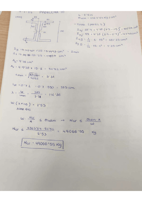 He publicado nuevos ejercicios de 2º Elasticidad y Resistencia de Materiales I: PRACTICA 10 RESUELTA (PANDEO) 2023.pdf