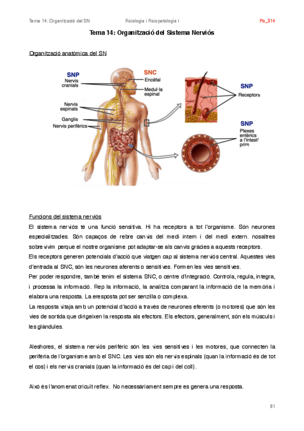 He publicado nuevos apuntes de 2º Fisiología y Fisiopatología I: Tema 14 - Organització del Sistema Nerviós.pdf