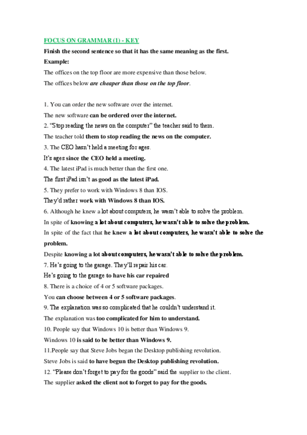 He publicado nuevos ejercicios de 1º Apuntes Variados: 1Key-FOCUS ON GRAMMAR Further Practice 1.pdf