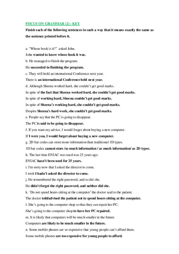 He publicado nuevos ejercicios de 1º Apuntes Variados: 2Key FOCUS ON GRAMMAR Further Practice 2.pdf