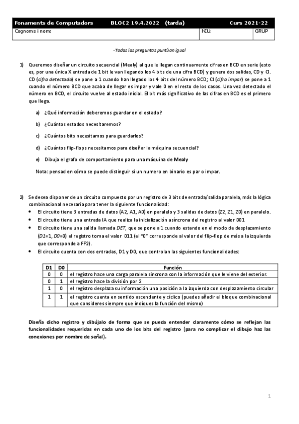 He publicado nuevos apuntes de 1º Fonaments dels Computadors: Examens Bloc2 resolts 2022-2023