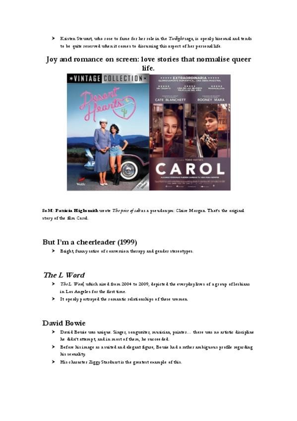 ✔ Primeras representaciones Mädchen in Uniform (1931): clásico lésbico que desafía normas. Spartacus (1960): escena “Snails and Oysters”, censurada por el Código Hays. ✔ Cine y visibilidad Philadelphia (1993): aborda homofobia, discriminación laboral y