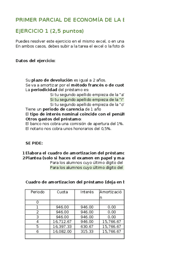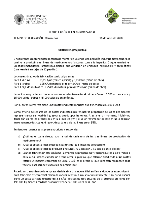 parciales I, II y recu II + excel con proceso