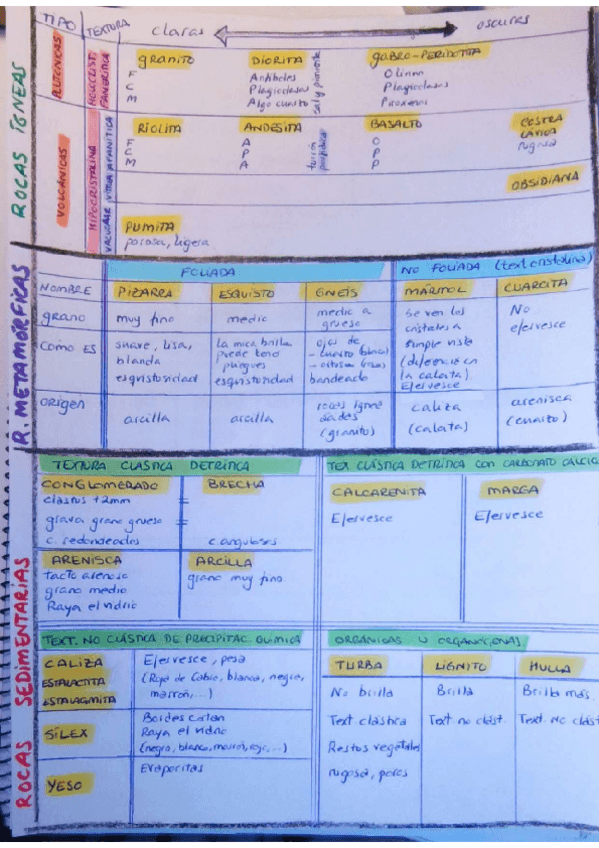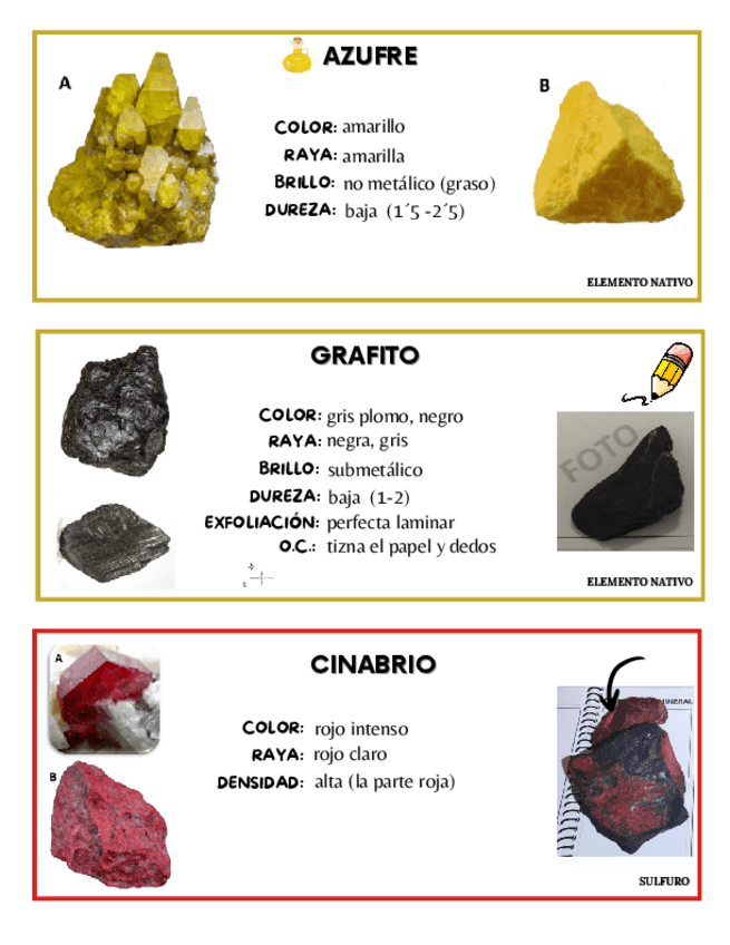 Esquema de cada mineral para saber identificarlos