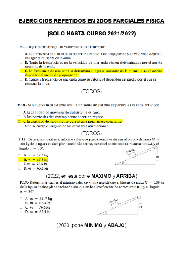 ejercicios repetidos de los segundos parciales de física 1
