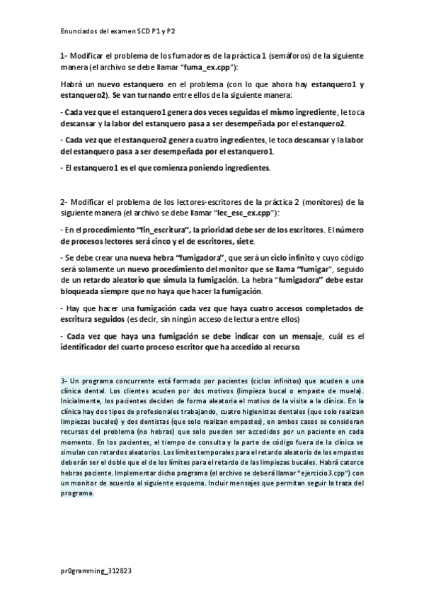 He publicado nuevos examenes de 2º Sistemas Concurrentes y Distribuidos: examenanamaria.pdf