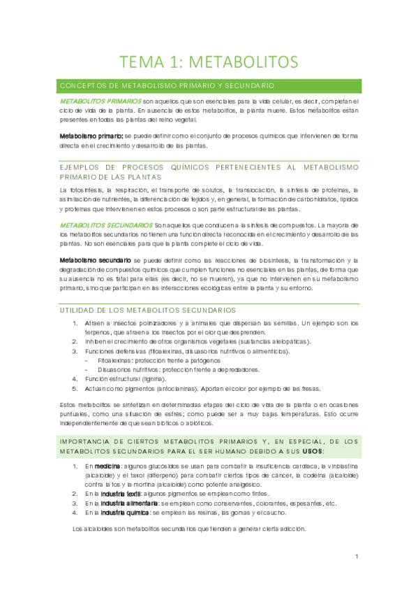 He publicado nuevos apuntes de 4º Metabolitos Vegetales de Interés en Biotecnología: Temario-Metabolitos