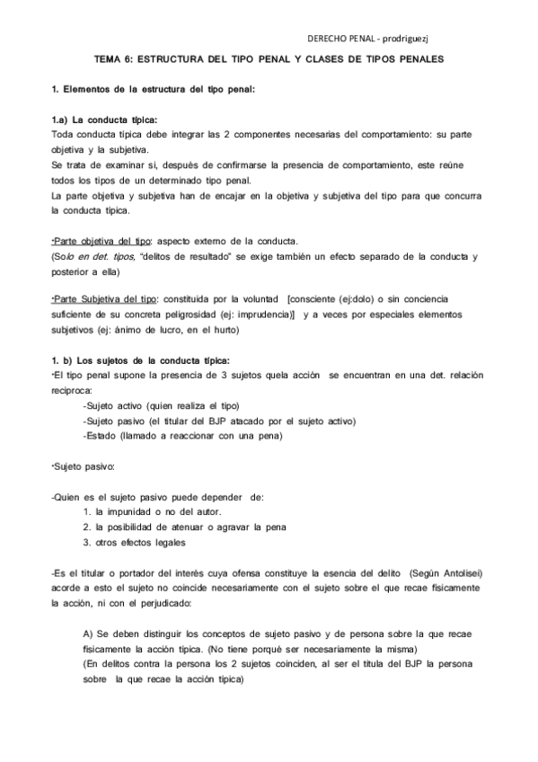He publicado nuevos apuntes de 1º Fundamentos del Derecho Penal y Teoría del Delito: Tema 6 Estructura del tipo penal y clases de tipos penales.pdf