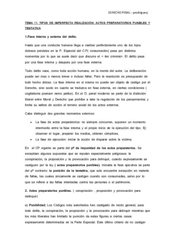 He publicado nuevos apuntes de 1º Fundamentos del Derecho Penal y Teoría del Delito: Tema 11 Tipos de imperfecta realización - actos preparatorios punibles y tentativa.pdf