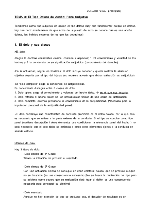 He publicado nuevos apuntes de 1º Fundamentos del Derecho Penal y Teoría del Delito: Tema 8 El tipo doloso de acción - parte subjetiva.pdf