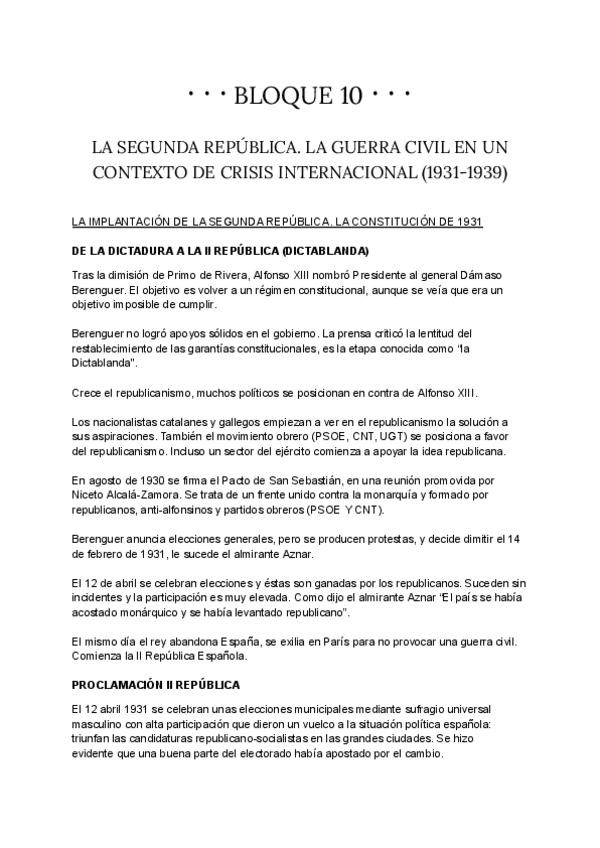 LA SEGUNDA REPÚBLICA. LA GUERRA CIVIL EN UN CONTEXTO DE CRISIS INTERNACIONAL (1931-1939)