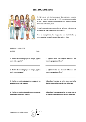 Test sociométrico elaborado para conocer las relaciones sociales en un grupo de amigas de 1º de la ESO