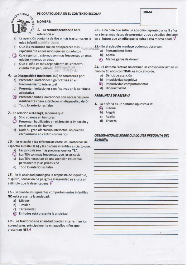 He publicado nuevos examenes de 4º Psicopatología en El Contexto Escolar: Examen resuelto (psicopatología).pdf
