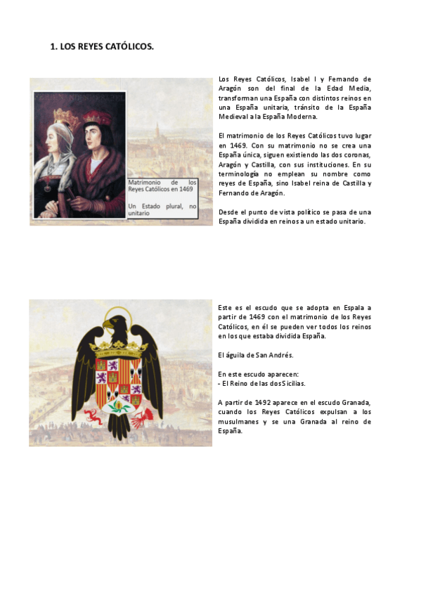 Apuntes desde Reyes Católicos hasta Sexenio Democrático. Incluye imágenes aclaratorias