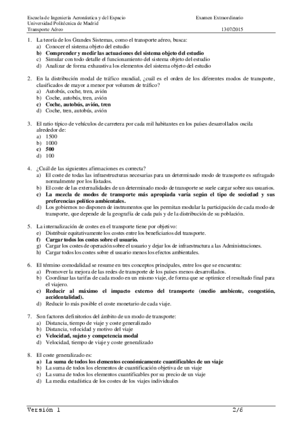 Exámenes Extraordinarios Transporte con solucion
