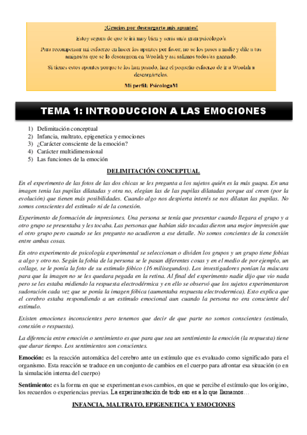 He publicado nuevos apuntes de 1º Motivación y Emoción: Emoción