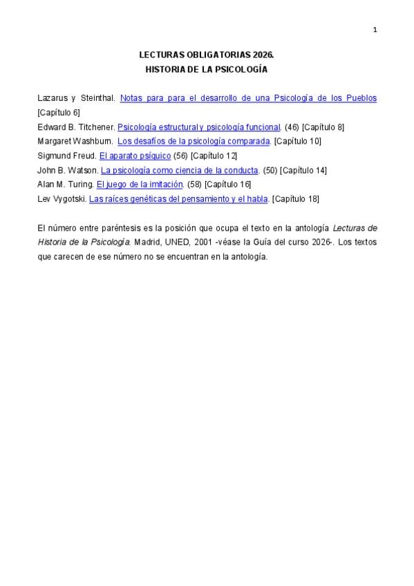 He publicado nuevos apuntes de 1º Historia de la Psicología: LECTURAS-OBLIGATORIAS-HISTORIA-2026.pdf