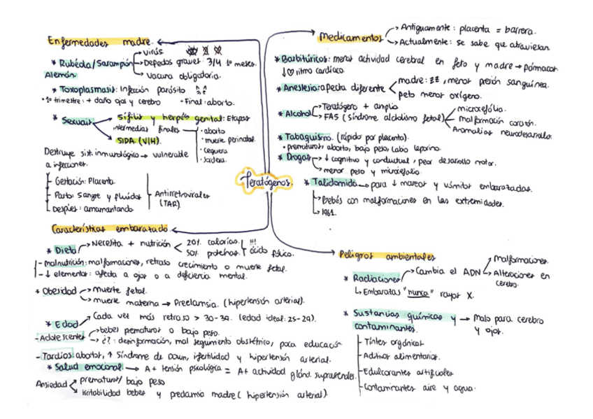 Esquema muy resumido sobre los teratógenos que afectan en la etapa prenatal :)