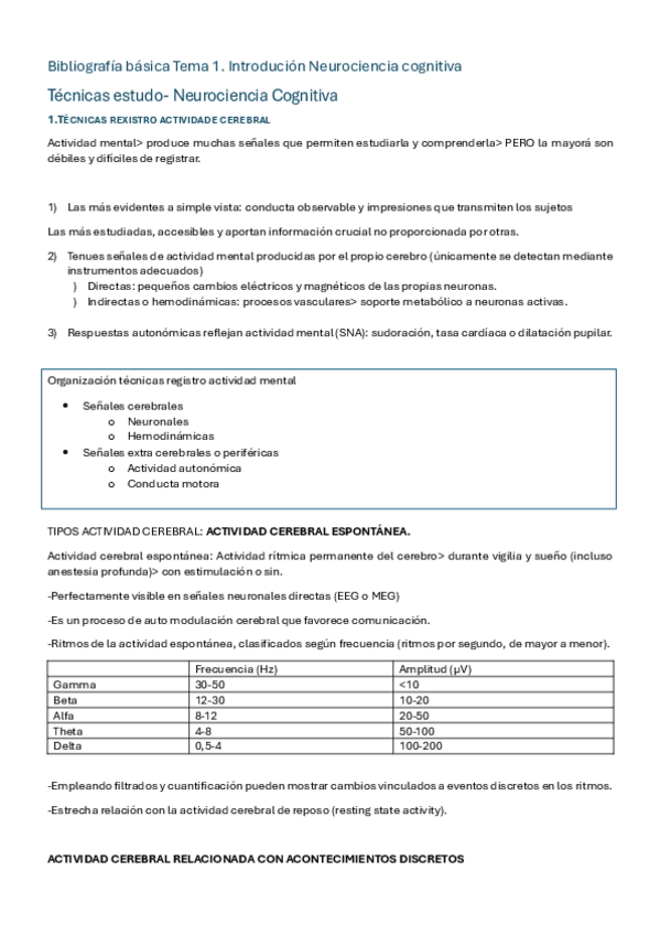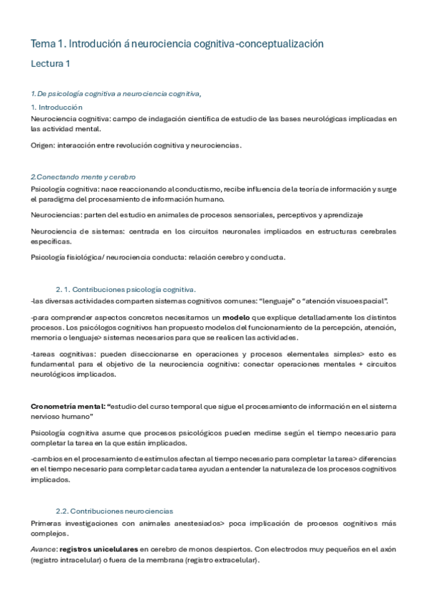 Resumen de la bibliografía básica del tema 2 de neurociencia cognitiva