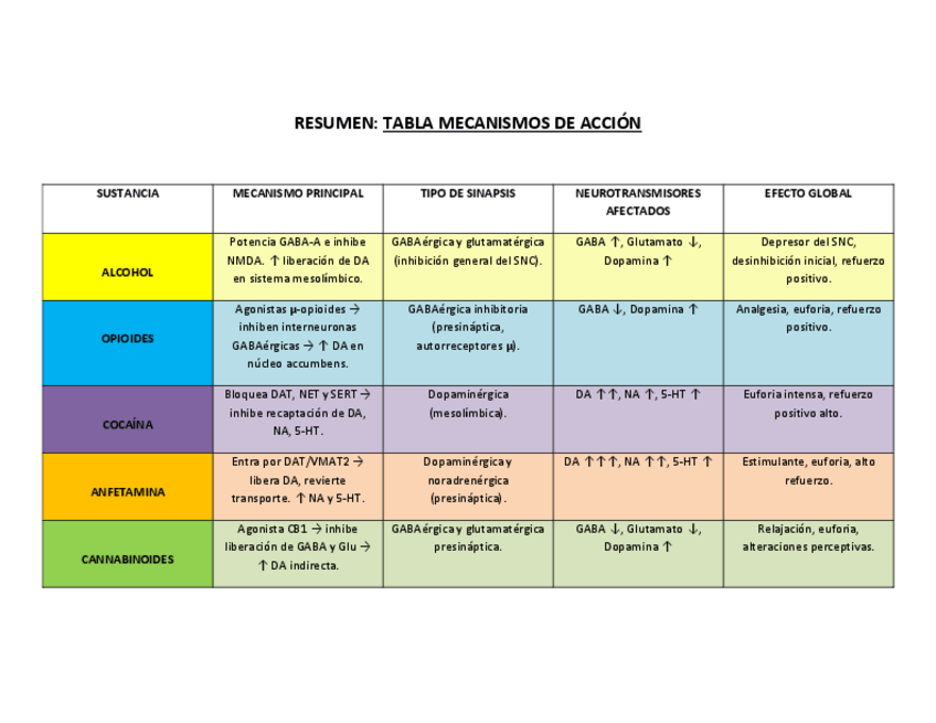 He publicado nuevos apuntes de 4º Neurofarmacología de la Conducta: TABLA-RESUMEN-DROGAS.pdf