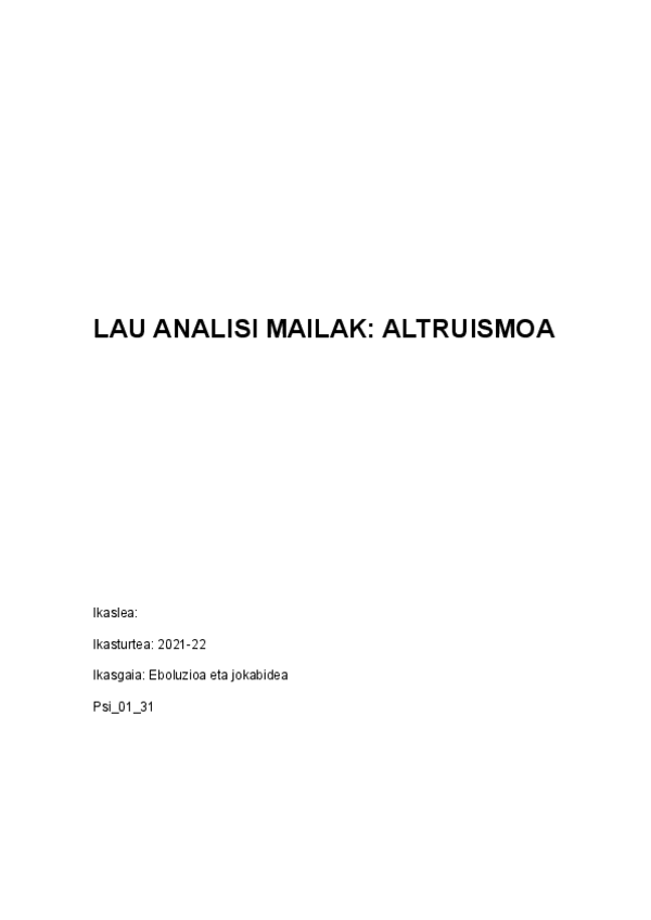 He publicado nuevos trabajos de 1º Evolución y Conducta: LAU-ANALISI-MAILAK-ALTRUISMOA.pdf