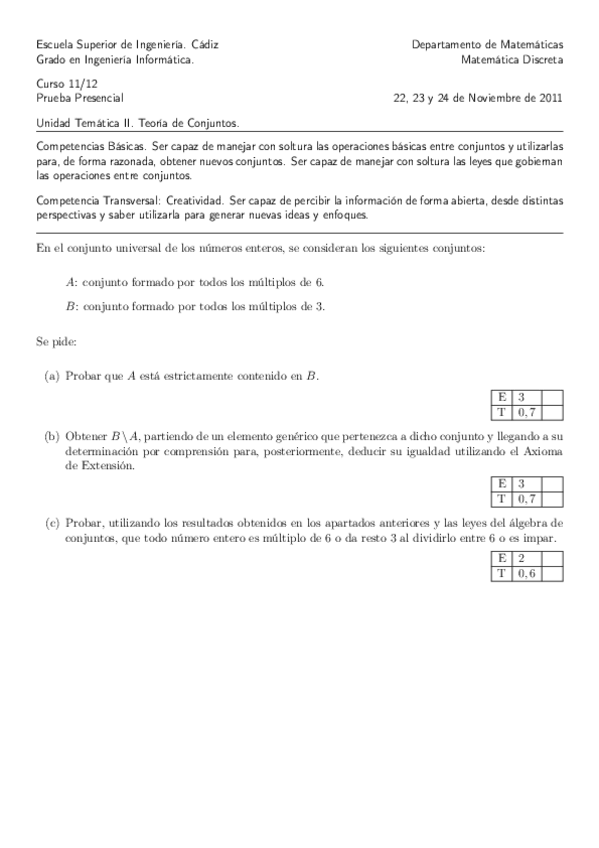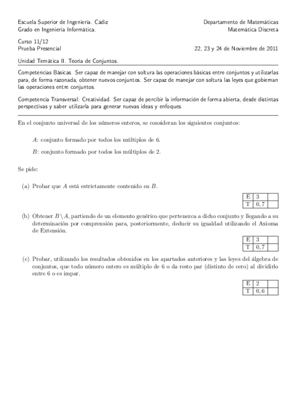 He publicado nuevos examenes de 1º Matemática Discreta: Unidad_Tematica_I.pdf