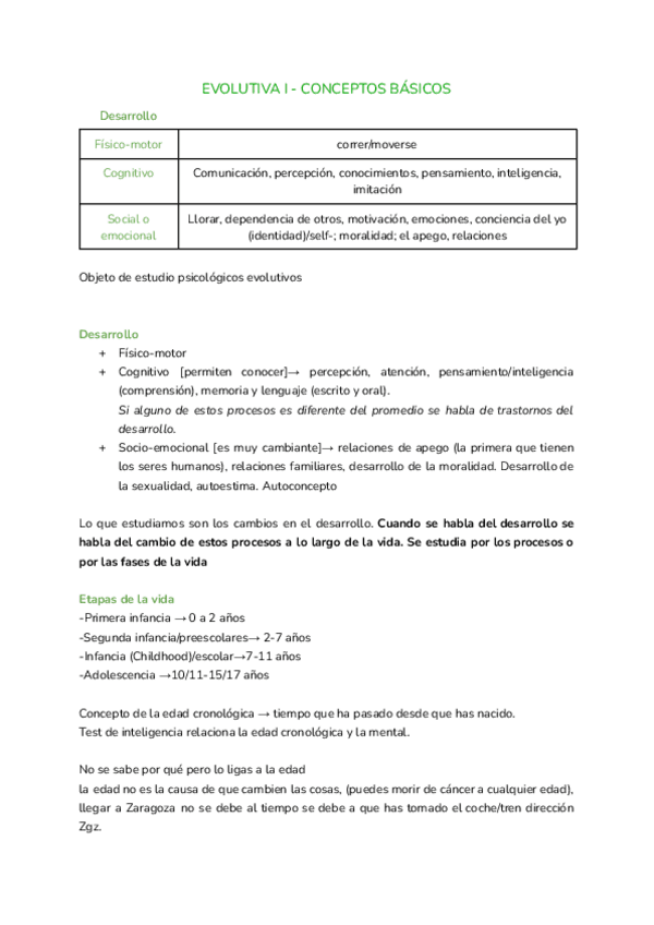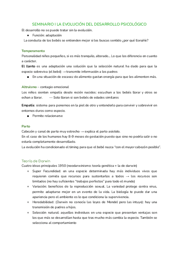 Resúmenes de los problemas, lecturas y vídeos de Evolutiva I. Sí, entran en el examen