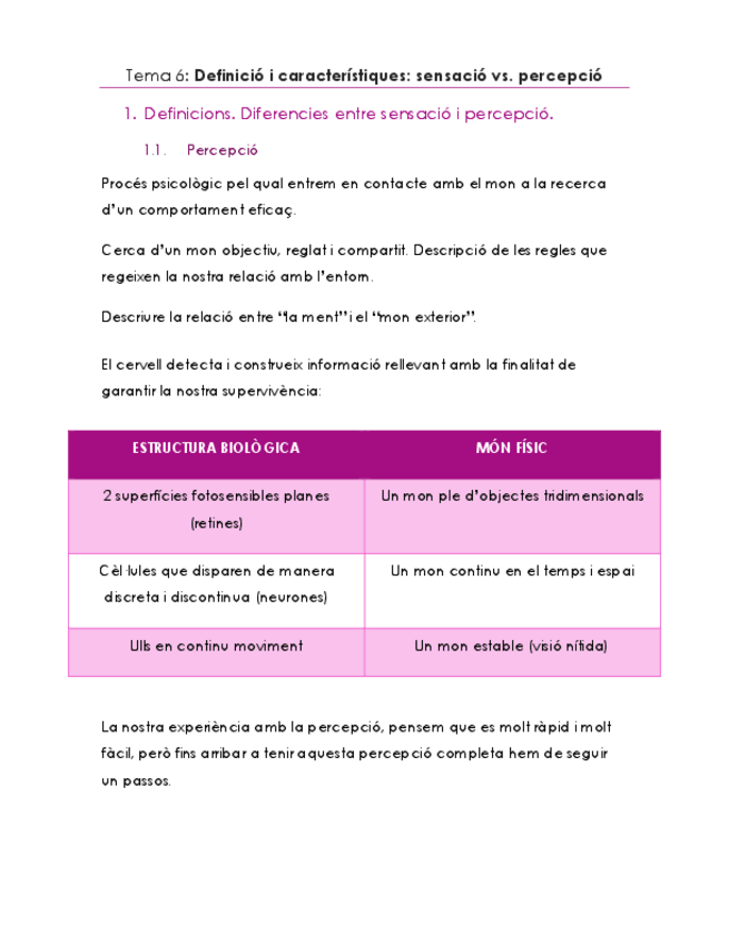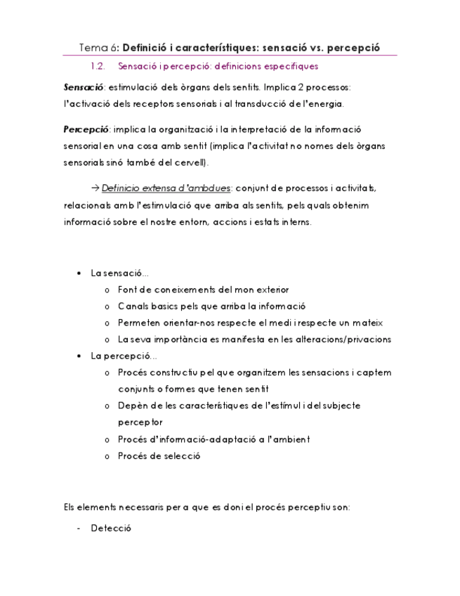 He publicado nuevos apuntes de 1º Procesos Psicológicos: Atención y Percepción: Tema6-Definició i característiques - sensació vs percepció.pdf
