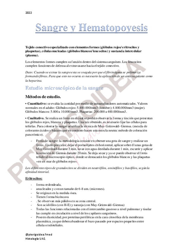 He publicado nuevos apuntes de 1º Histología, Biología Celular, Embriología y Genética: Sangre-y-Hematopoyesis.pdf