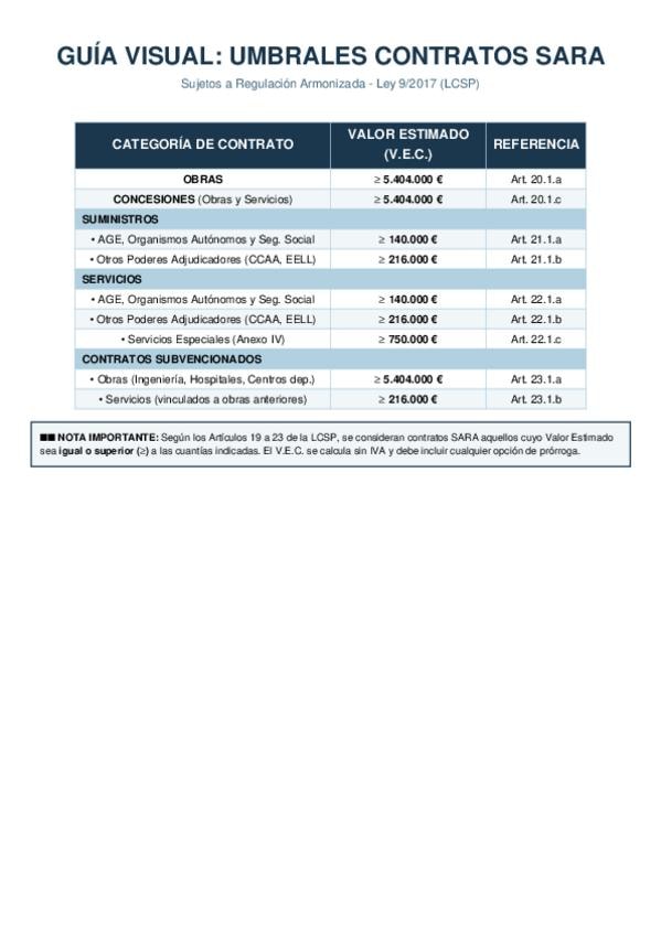 Esquema visual para memorizar o dar un repaso rápido a los umbrales de los contratos sujetos a regulación armonizada conforme a la Ley 9/2017 de Contratos del Sector Público. Actualizados y en vigor para el año 2026-2027