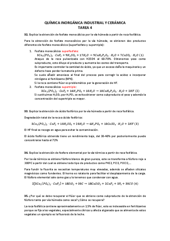 He publicado nuevos ejercicios de 4º Química Inorgánica Industrial y Cerámica: Tareas Cerámica