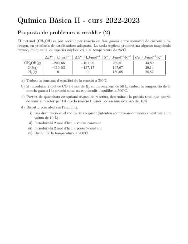 He publicado nuevos examenes de 1º Química Bàsica Ii: proposta problema 2