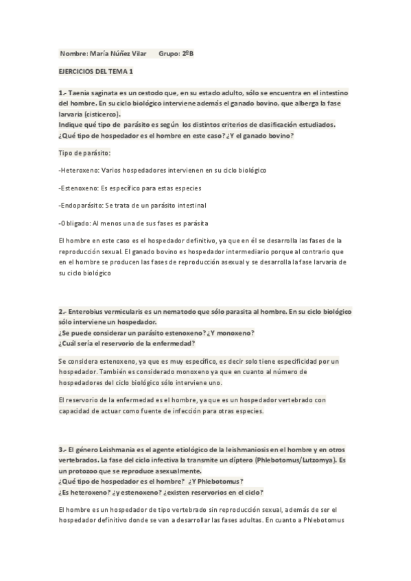 He publicado nuevos apuntes de 2º Parasitología: Actividades Rocío Benítez