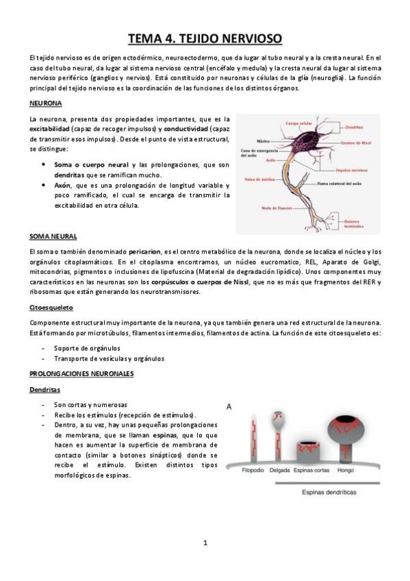 He publicado nuevos apuntes de 2º Biología Celular e Histología II: Tema 4. Tejido nervioso.pdf