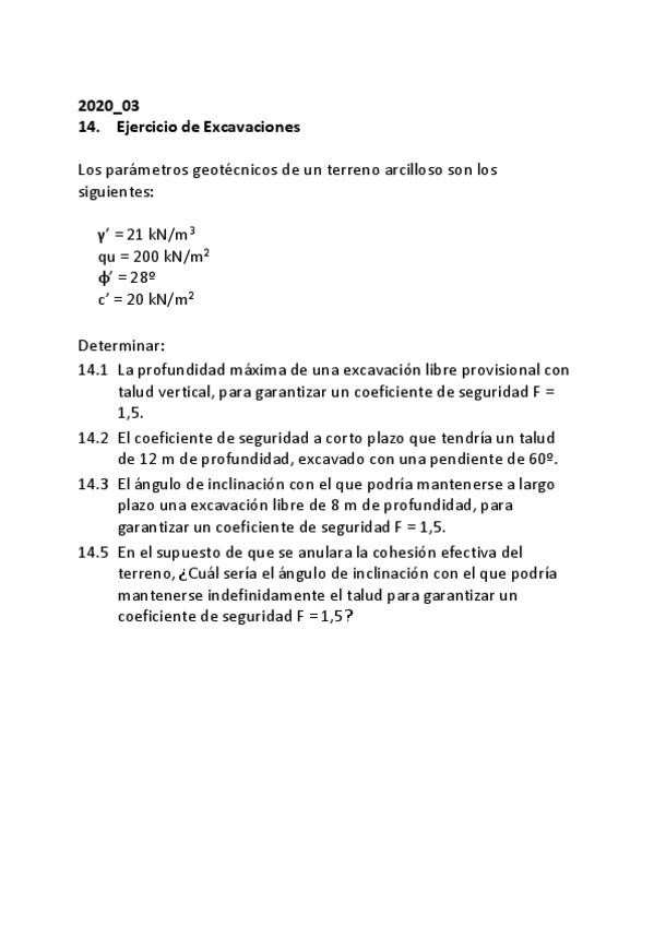 He publicado nuevos apuntes de 5º Mecánica del Suelo: EJERCICIOS DURANTE PANDEMIA SUBIR NOTA