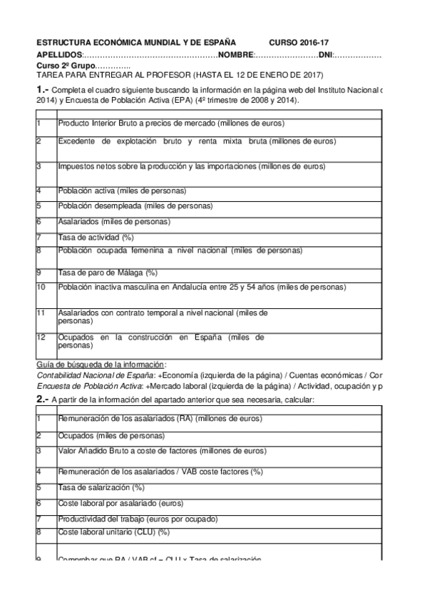 He publicado nuevos ejercicios de 2º Estructura Económica Mundial y de España: Tarea-no3.xlsx