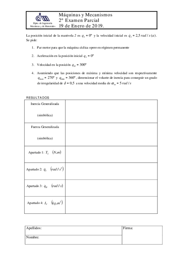 He publicado nuevos examenes de 2º Máquinas y Mecanismos: Problemas Segundo Parcial 2018_19_Solucion.pdf
