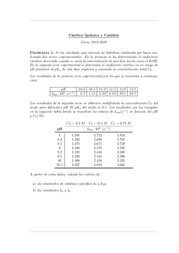 He publicado nuevos examenes de 2º Cinética Química y Catálisis: Exámenes 19/20