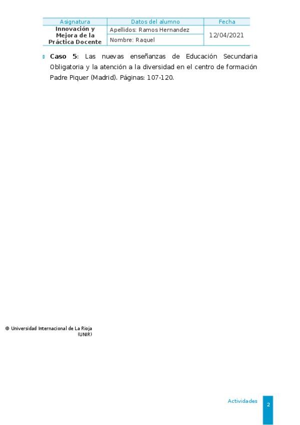 He publicado nuevos trabajos de 2º Innovación y Mejora de la Práctica Docente: inovacion-y-mejora-de-la-practica-docenteRaquelRamos.pdf