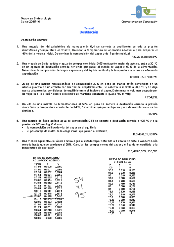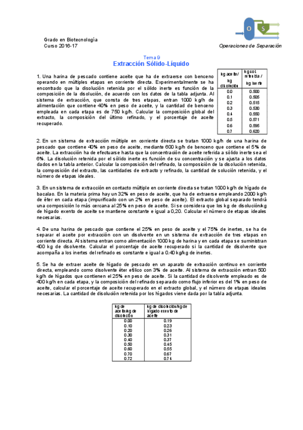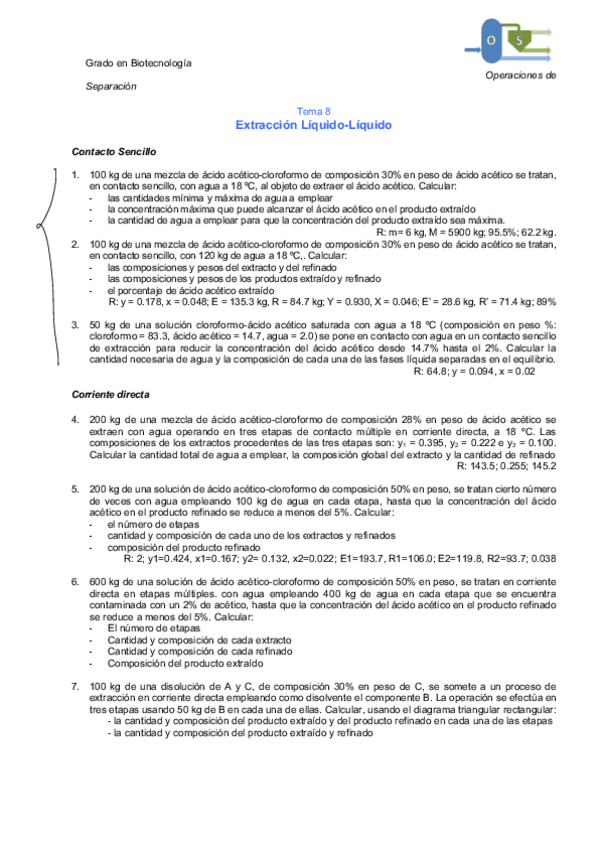 He publicado nuevos ejercicios de 3º Operaciones de Separación: Problemas tema 6 7 8 y 9