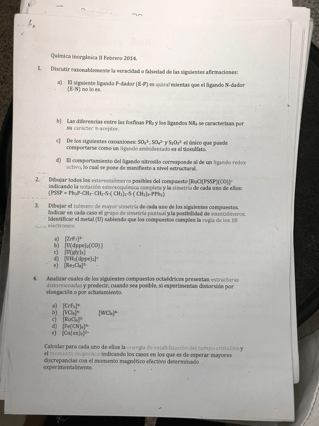 He publicado nuevos examenes de 3º Quimica Inorganica II: Parciales ENERO(T1-5)