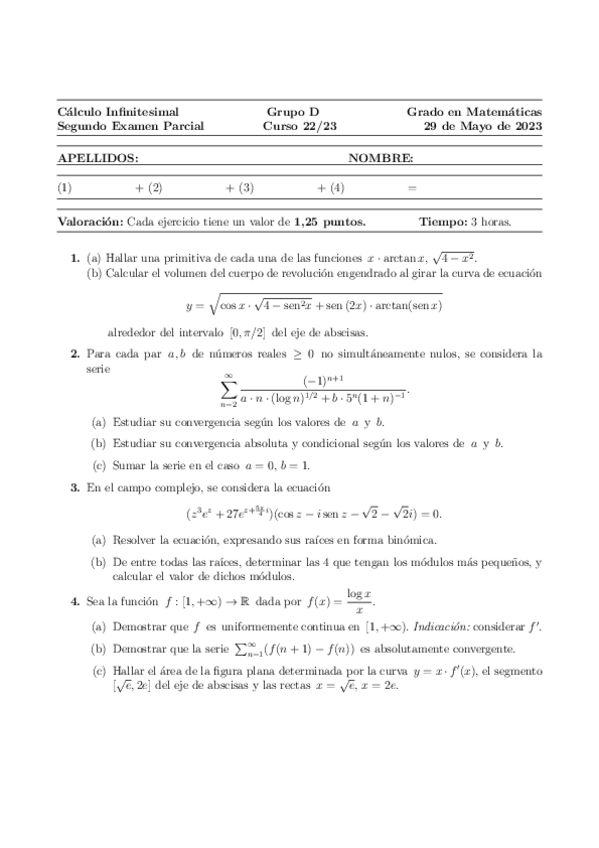 He publicado nuevos examenes de 1º Cálculo Infinitesimal: Examen-Segundo Parcial-Resuelto-2023